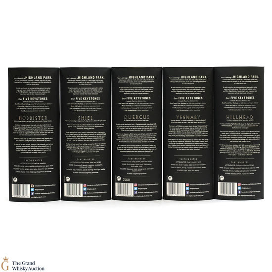 This lot contains 5 x 70cl, Hobbister, Shiel, Quercus, Yesnaby & Hillhead.