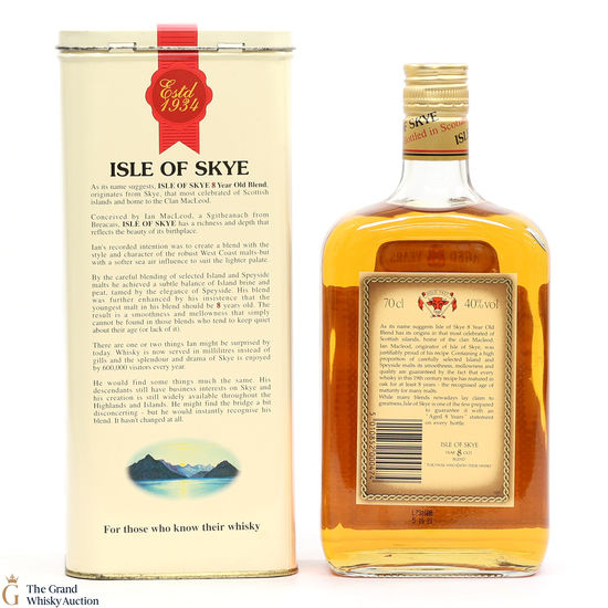 Ian Macleod, the founder of 'Isle of Skye' was justifiably proud of his families 19th-century recipe, which contains a high proportion of carefully selected Island and Speyside malts.