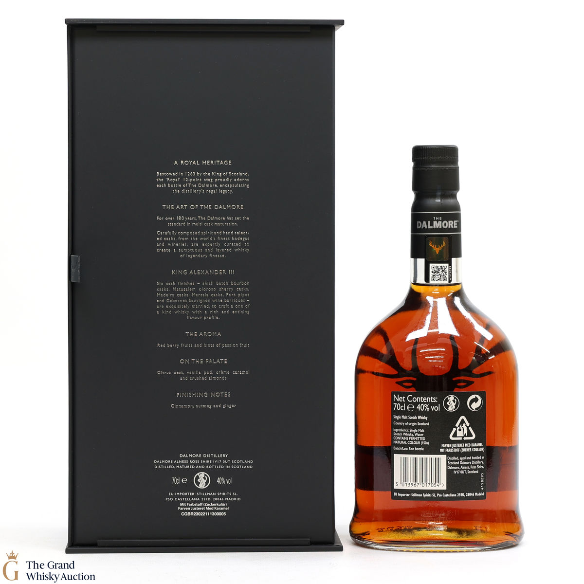To make The Dalmore King Alexander III, Master Distiller Richard Paterson specially selected 6 casks of differently aged Dalmore malts matured in wine, Madeira, sherry, marsala, Kentucky bourbon and port casks. A remarkable feat of blending crafted to honour the act of saving Scotland's King in 1263. It is a rich, fruity Highland single malt.