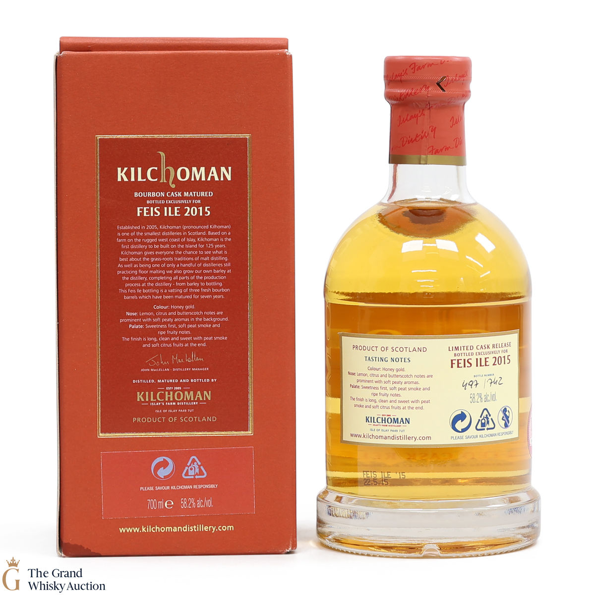 This was the Kilchoman Fèis Ìle 2015, which was sold exclusively at Kilchoman Distillery. Matured in bourbon casks numbers 245, 249 & 250 distilled May 2008, it was bottled in May 2015 at 58.2% ABV. This is one of only 742 bottles produced.