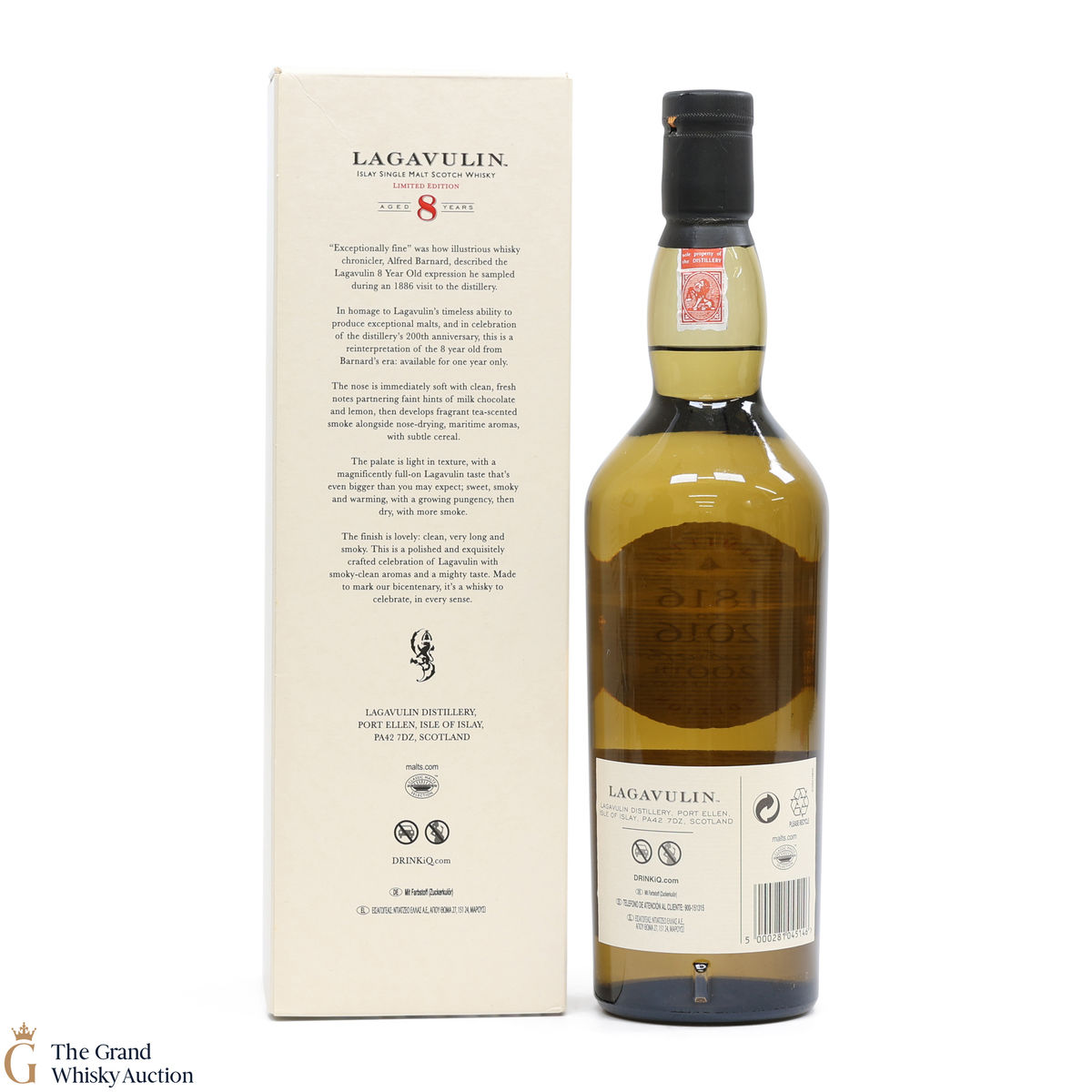 This 8-year-old was released in 2016 to commemorate the 200th anniversary of the founding of Lagavulin distillery by John Johnston in 1816. This single malt is smoky, with underlying sweet spice. It was inspired by the visit of Alfred Barnard to the distillery in the 1880s when he tried an 'exceptionally fine' eight-year-old from the distillery, making this a very fitting tribute for the milestone occasion.