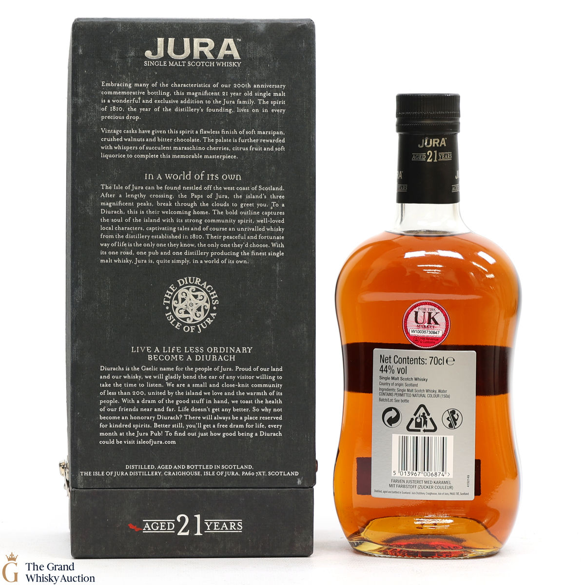 Due to the various ages of bottles and their seals, the condition of liquid is at the buyer's discretion and no claim can be lodged against failure/leakage in transit. Loss and breakage cover is available at 3% of the hammer price as standard. If the lot is not insured, no claim can be lodged against the courier or The Grand Whisky Auction for breakage or loss in transit.