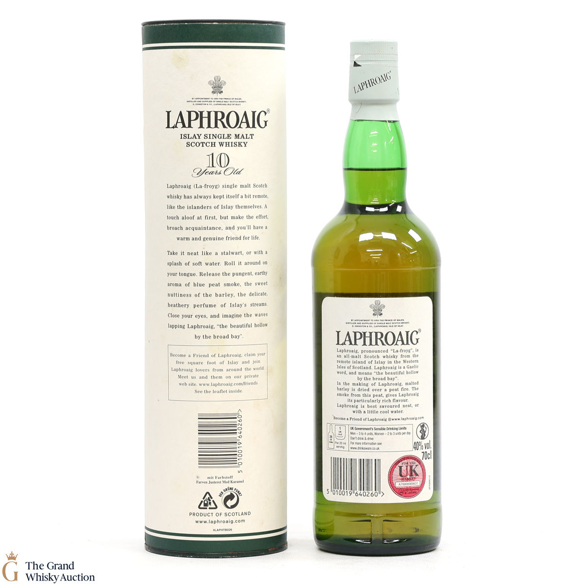 A 70cl of the medicinal 10 year old from Islay's bestselling distillery, Laphroaig. In making Laphroaig, malted barley is dried over a peat fire. The smoke from this peat, found only on Islay, gives Laphroaig its particularly rich flavour.