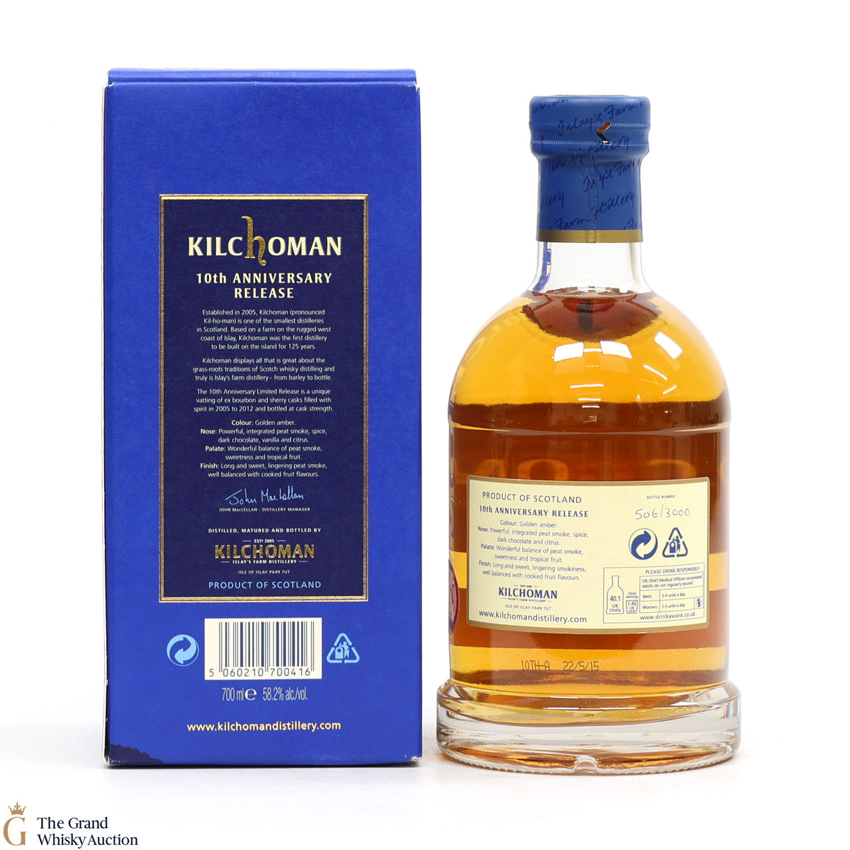 This limited edition of just 3000 bottles was released in 2015 by Kilchoman Distillery to celebrate their 10th anniversary of opening. This special bottling is made up of both Sherry and bourbon Kilchoman cask matured whiskies with vintages varying from 2005 to 2012. Excitingly, whisky from the first cask ever filled (01/2005) is used for this celebratory release.