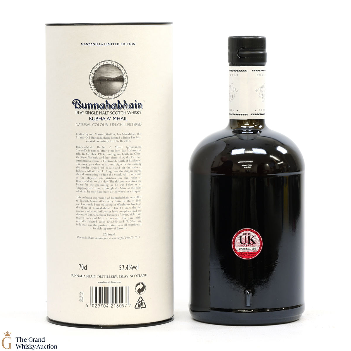 Bunnahabhain Rubha A’ Mhail is a 11-year old Bunnahabhain which was bottled for the 2015 Fèis Ìle. Aged in two Spanish Manzanilla sherry butts (#550 & #554) this is a limited edition of 1,200 individually numbered bottles.