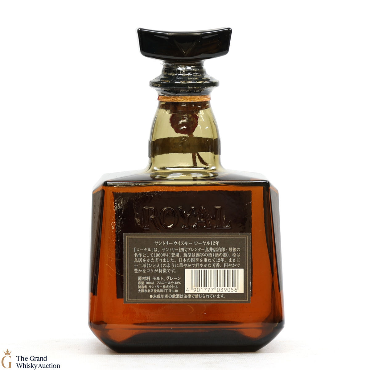 This blended whisky is an 86-proof bottle of Royal 12-year-old, bottled by Suntory in a decanter-shaped bottle.