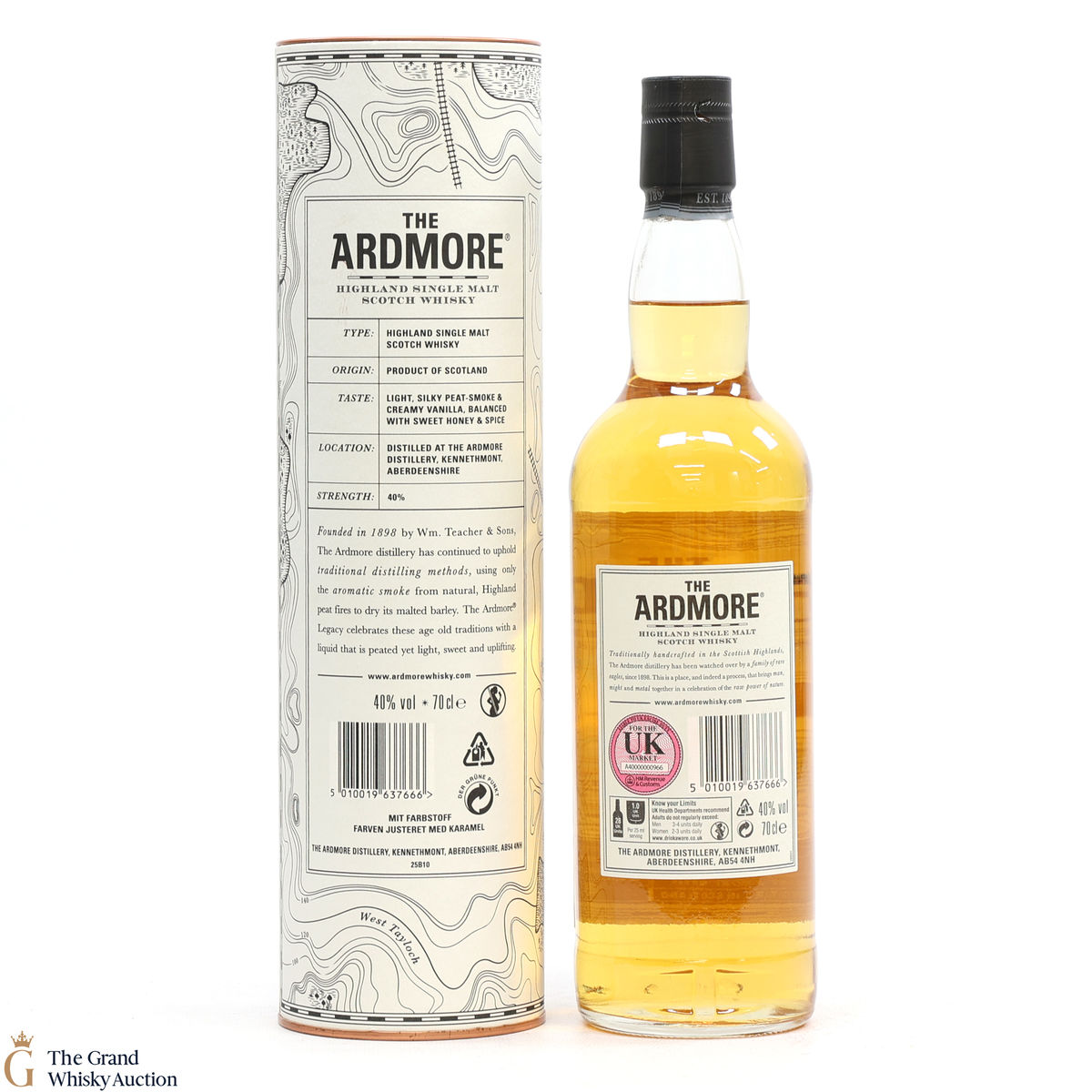 Ardmore Legacy was launched in 2014 to replace Ardmore Traditional. Ardmore Legacy is made with 80% peated and 20% unpeated malt.