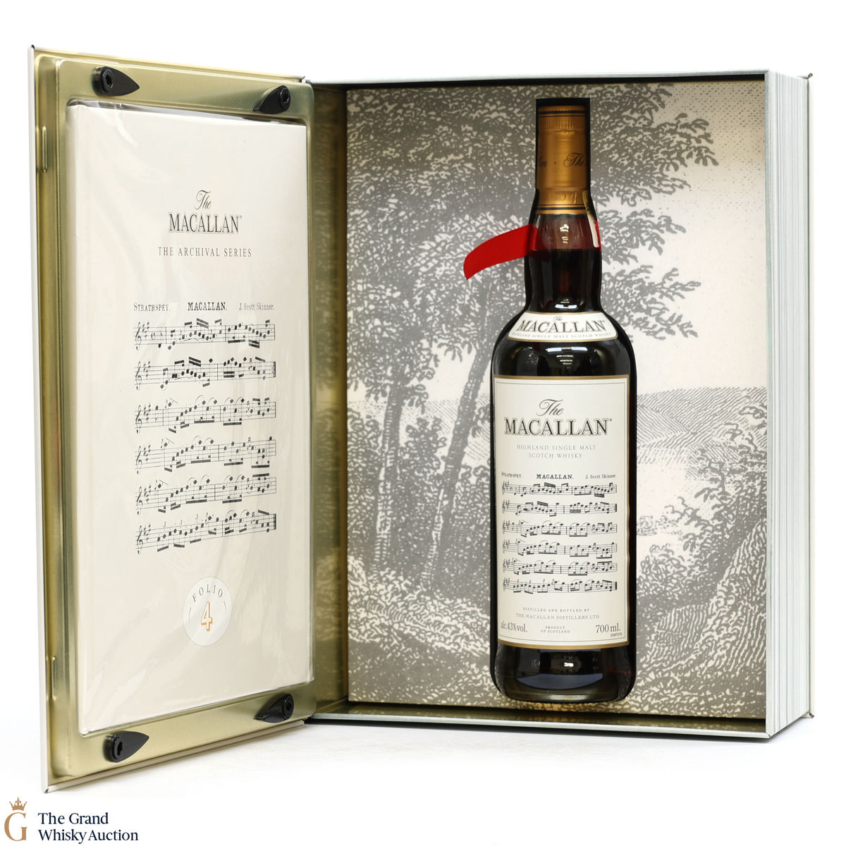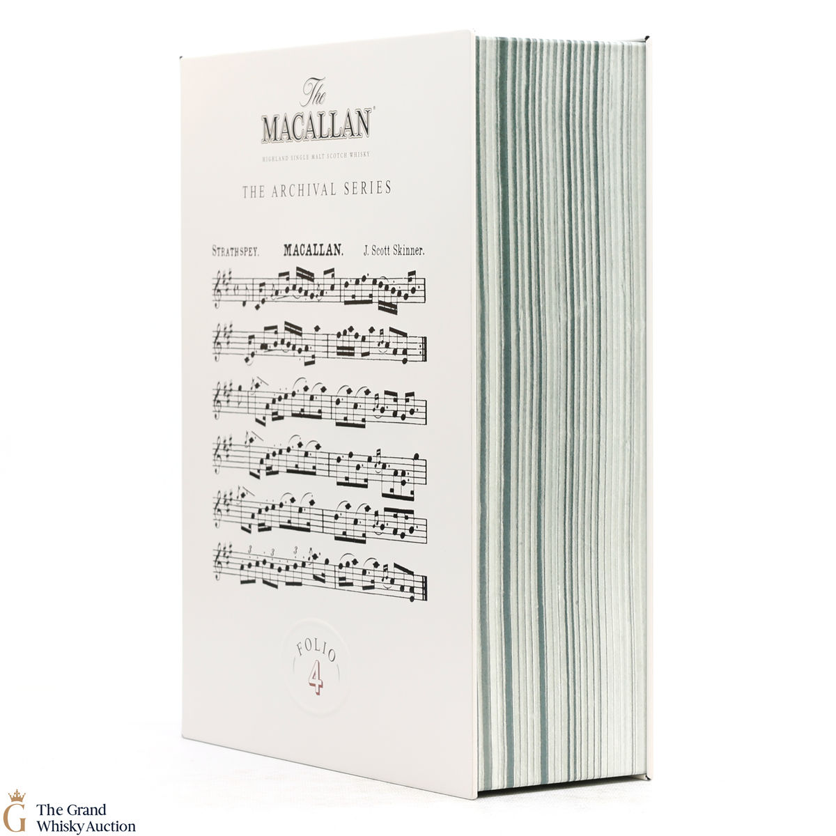 The fourth edition in the Archival Series from The Macallan. Folio 4 remembers the legendary advertising campaigns of the 1970s, 1980s and 1990s that brought The Macallan to the public’s attention outside of Scotland. It is presented in a beautiful book shaped, tin case. It features an advertisement including a Strathspey composed by James Scott Skinner (1843-1927). The advert notes that Skinner was so moved by his favourite malt he created a unique piece of music featuring his signature lilting notes with the simple catchphrase: “The Macallan. The Malt.”