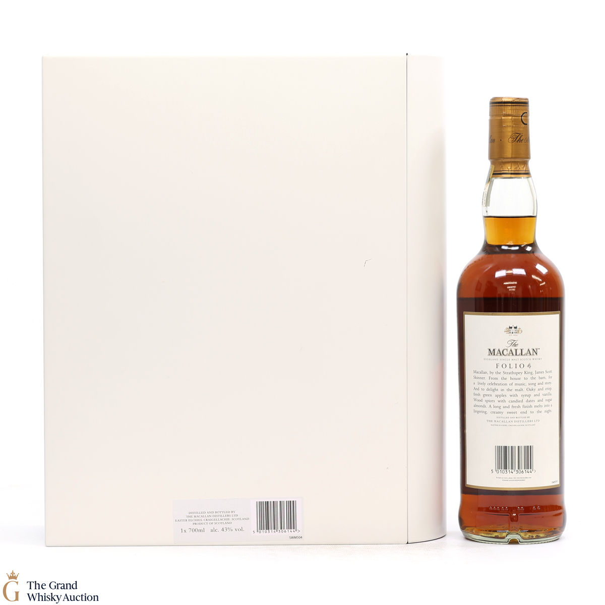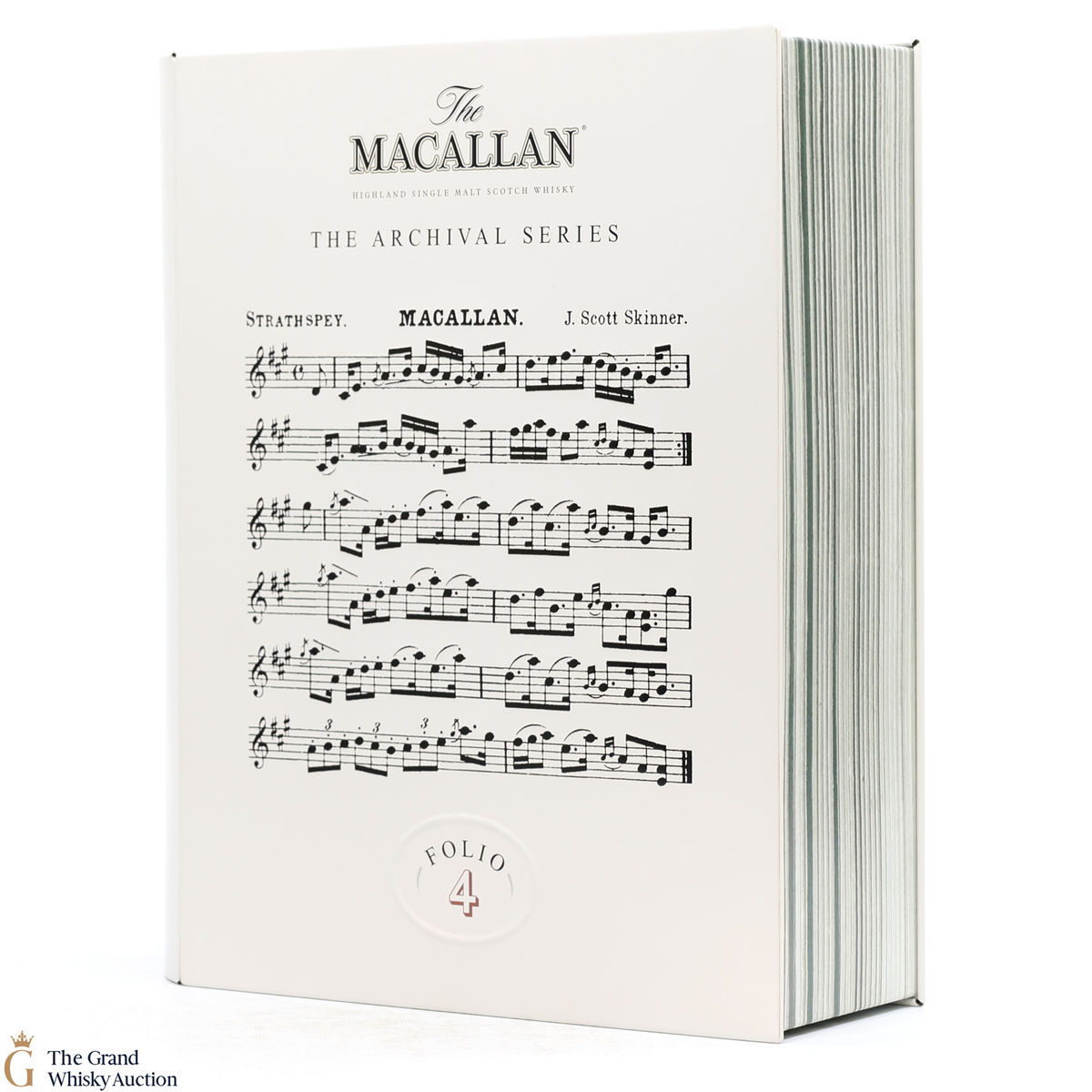 The fourth edition in the Archival Series from The Macallan. Folio 4 remembers the legendary advertising campaigns of the 1970s, 1980s and 1990s that brought The Macallan to the public’s attention outside of Scotland. It is presented in a beautiful book shaped, tin case. It features an advertisement including a Strathspey composed by James Scott Skinner (1843-1927). The advert notes that Skinner was so moved by his favourite malt he created a unique piece of music featuring his signature lilting notes with the simple catchphrase: “The Macallan. The Malt.”