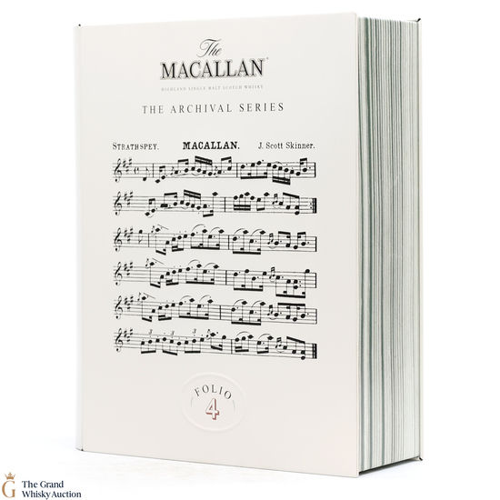 The fourth edition in the Archival Series from The Macallan. Folio 4 remembers the legendary advertising campaigns of the 1970s, 1980s and 1990s that brought The Macallan to the public’s attention outside of Scotland. It is presented in a beautiful book shaped, tin case. It features an advertisement including a Strathspey composed by James Scott Skinner (1843-1927). The advert notes that Skinner was so moved by his favourite malt he created a unique piece of music featuring his signature lilting notes with the simple catchphrase: “The Macallan. The Malt.”