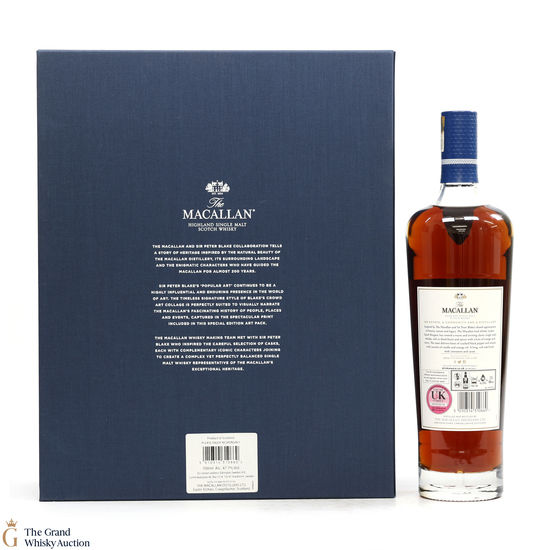 Part of The Anecdotes of Ages Collection, this is an extraordinary art and whisky collaboration with Sir Peter Blake. Being the third collaboration between the Macallan Distillery and Sir Peter Blake, this single malt was created to commemorate Sir Peter Blake's visit to The Macallan Estate. An Estate, a Community and a Distillery tells the story of some of the colourful characters from the distilleries' past and present and features a label designed by Sir Peter Blake.