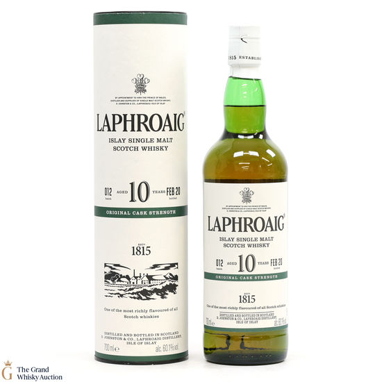 This bottling is from batch 012, original cask strength bottling of the medicinal 10-year-old from Islay's bestselling distillery, Laphroaig. In making Laphroaig, malted barley is dried over a peat fire. The smoke from this peat, found only on Islay, gives Laphroaig its particularly rich flavour. This release was bottled at 60.1% in February 2020.
