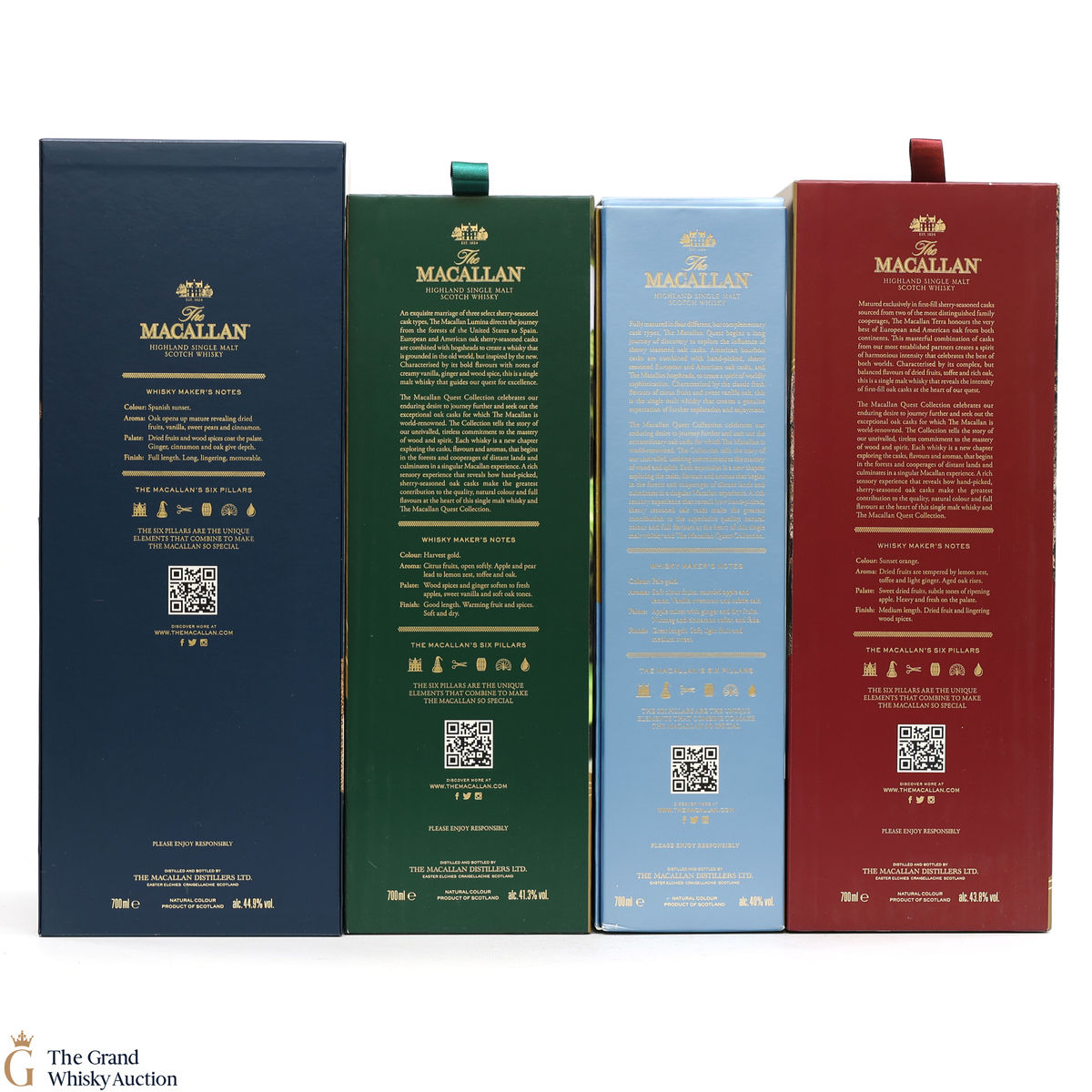 Macallan - The Quest Collection - Quest: Quest represents the beginning of the Quest Collection journey, it is made from a combination of four varieties of cask - bourbon casks, sherry-seasoned European oak casks, sherry-seasoned American oak casks, and hogsheads, bottled at 40% ABV.
