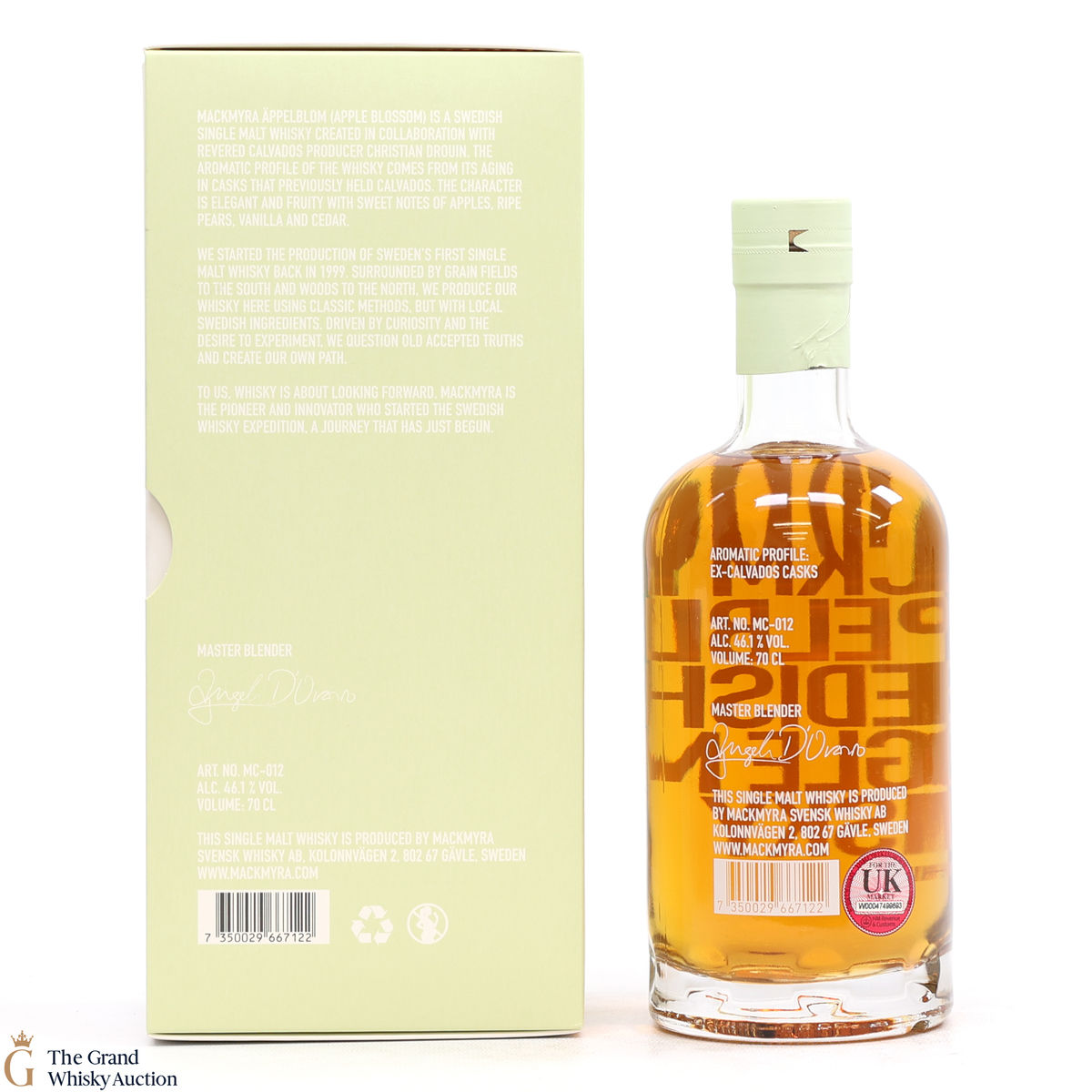 Mackmyra Äppelblom is a single malt distilled at the Mackmyra Bruk distillery. The whisky is finished in saturated oak casks which previously held Calvados from Christian Drouin.