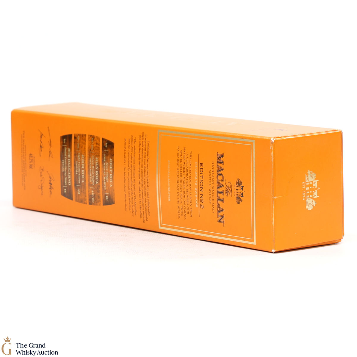 This is the second release from the Macallan Edition series. Edition No.2 is a collaboration between Macallan's master blender Bob Delgarno and legendary Spanish chefs Joan, Josep and Jordi Roca. The Rocas are the three brothers behind El Celler de Can Roca (named Best Restaurant in the World twice by Restaurant magazine). This single malt was drawn from a combination of sherry puncheons, butts and refill hogsheads.