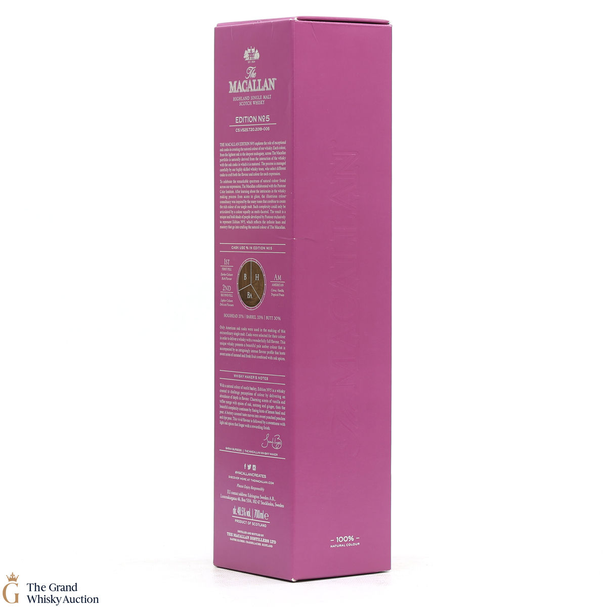 The fifth release in the Edition Series from The Macallan, The Macallan Edition No. 5 celebrates The Macallan’s extensive natural colour spectrum and the intricate whisky-making process, in partnership with masters at the Pantone Color Institute™ to create a unique shade of purple that features on the packaging.