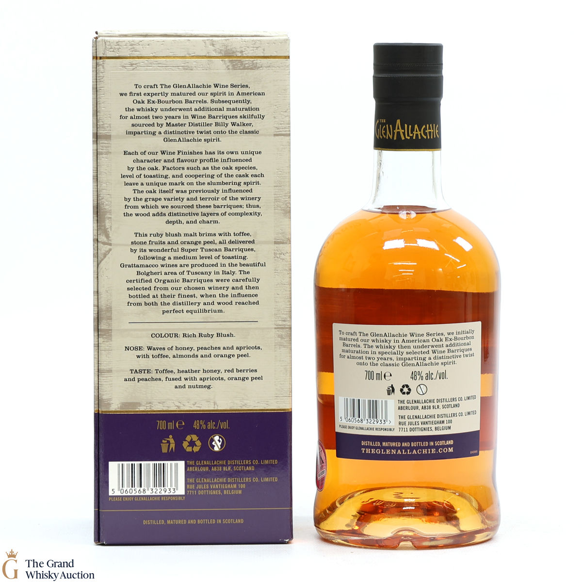 Distilled at the GlenAllachie Distillery, this single malt was matured for a total of 11 years, first maturing in an American Oak ex-bourbon barrel, then finished in a Grattamacco wine cask. Bottled at 48% ABV, this single malt is part of the limited edition GlenAllachie Wine Series.