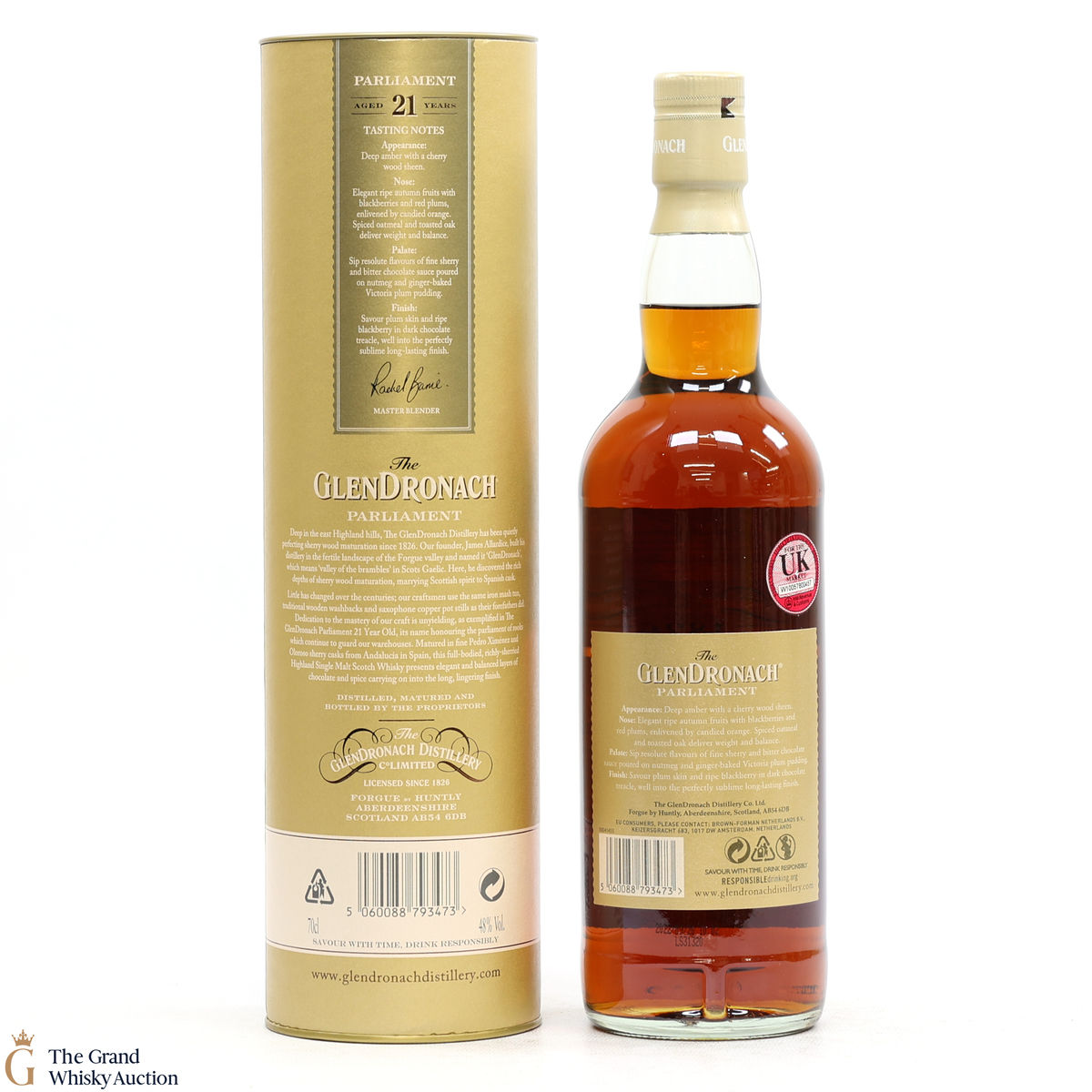 Due to the various ages of bottles and their seals, the condition of liquid is at the buyer's discretion and no claim can be lodged against failure/leakage in transit. Loss and breakage cover is available at 3% of the hammer price as standard. If the lot is not insured, no claim can be lodged against the courier or The Grand Whisky Auction for breakage or loss in transit.