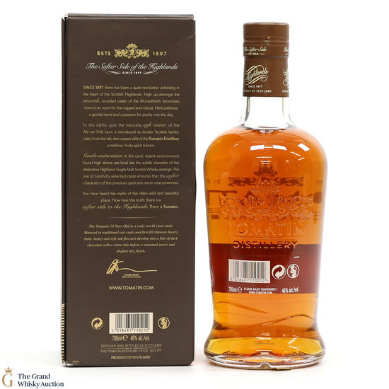 Distilled at the Tomatin Distillery, this single malt was aged for a total of 18 years, being finished in oloroso sherry casks. This spirit was bottled at 46% ABV.
