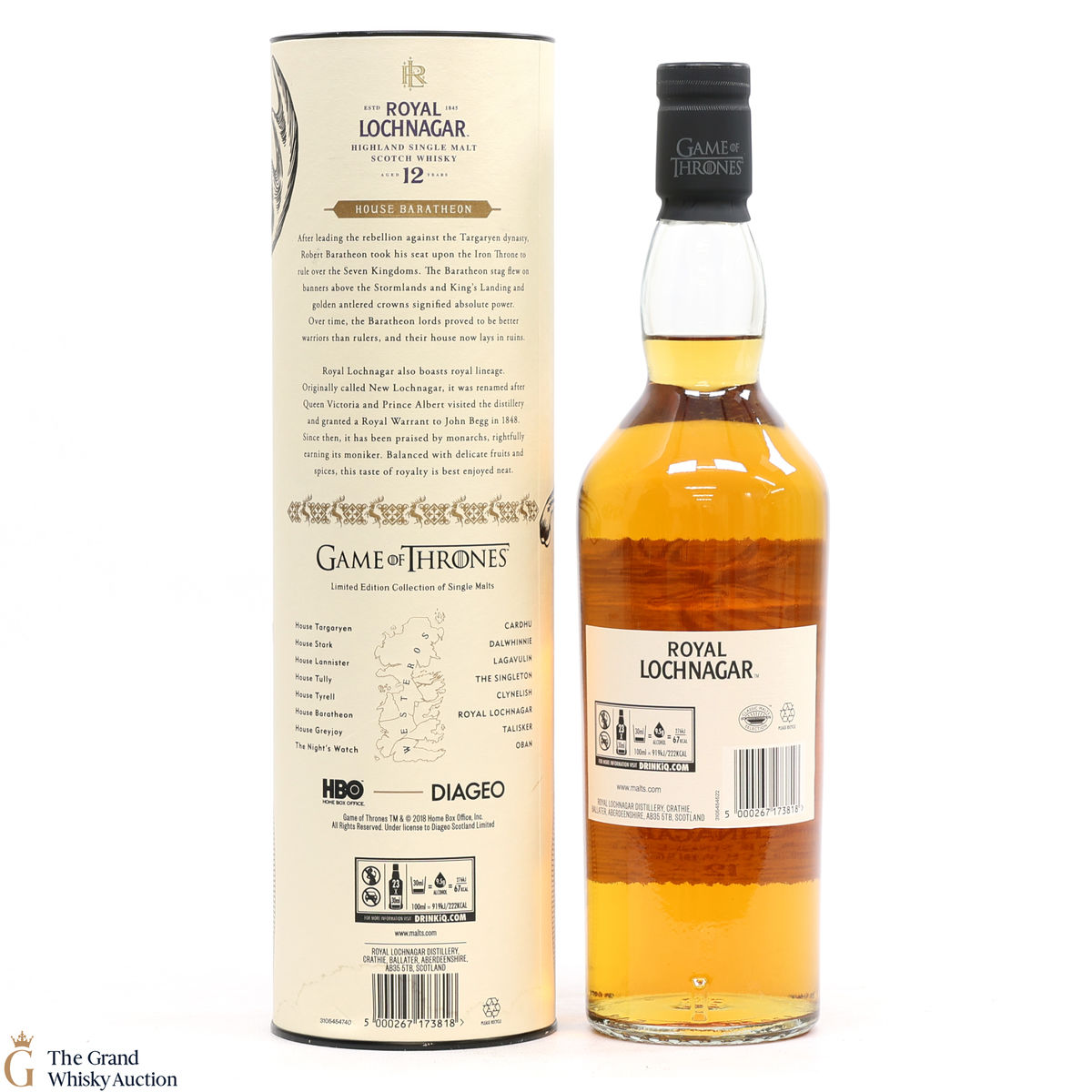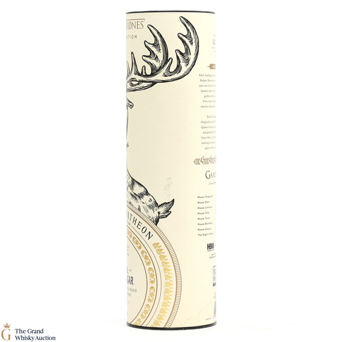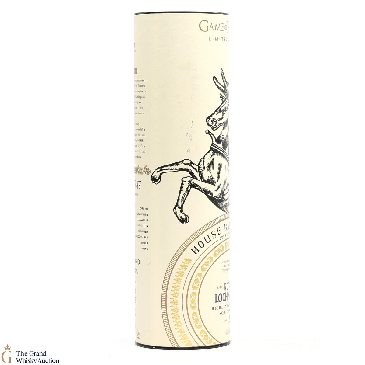 This is a limited-edition 12 year old single malt from Royal Lochnagar and it is part of Diagio's 2018 collaboration with HBO. Each single malt in the series relates to the land of houses of the Game of Thrones television series. The Royal Lochnagar bottle is decorated with a rampant black Stag, the sigil of House Baratheon that once flew on banners above the Stormlands and King’s Landing signifying absolute power.