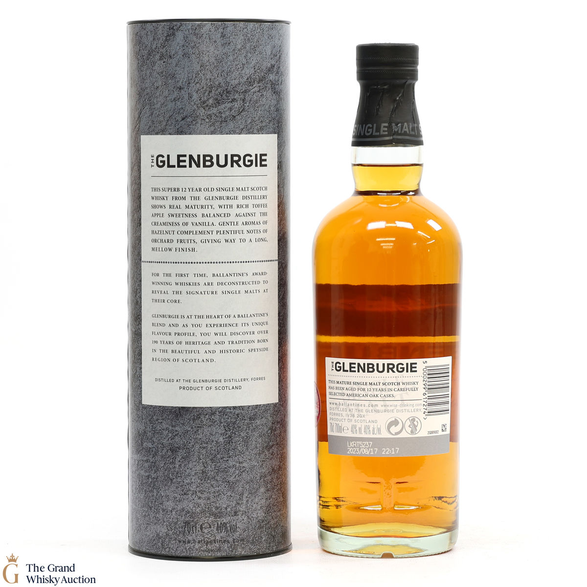 Due to the various ages of bottles and their seals, the condition of liquid is at the buyer's discretion and no claim can be lodged against failure/leakage in transit. Loss and breakage cover is available at 3% of the hammer price as standard. If the lot is not insured, no claim can be lodged against the courier or The Grand Whisky Auction for breakage or loss in transit.