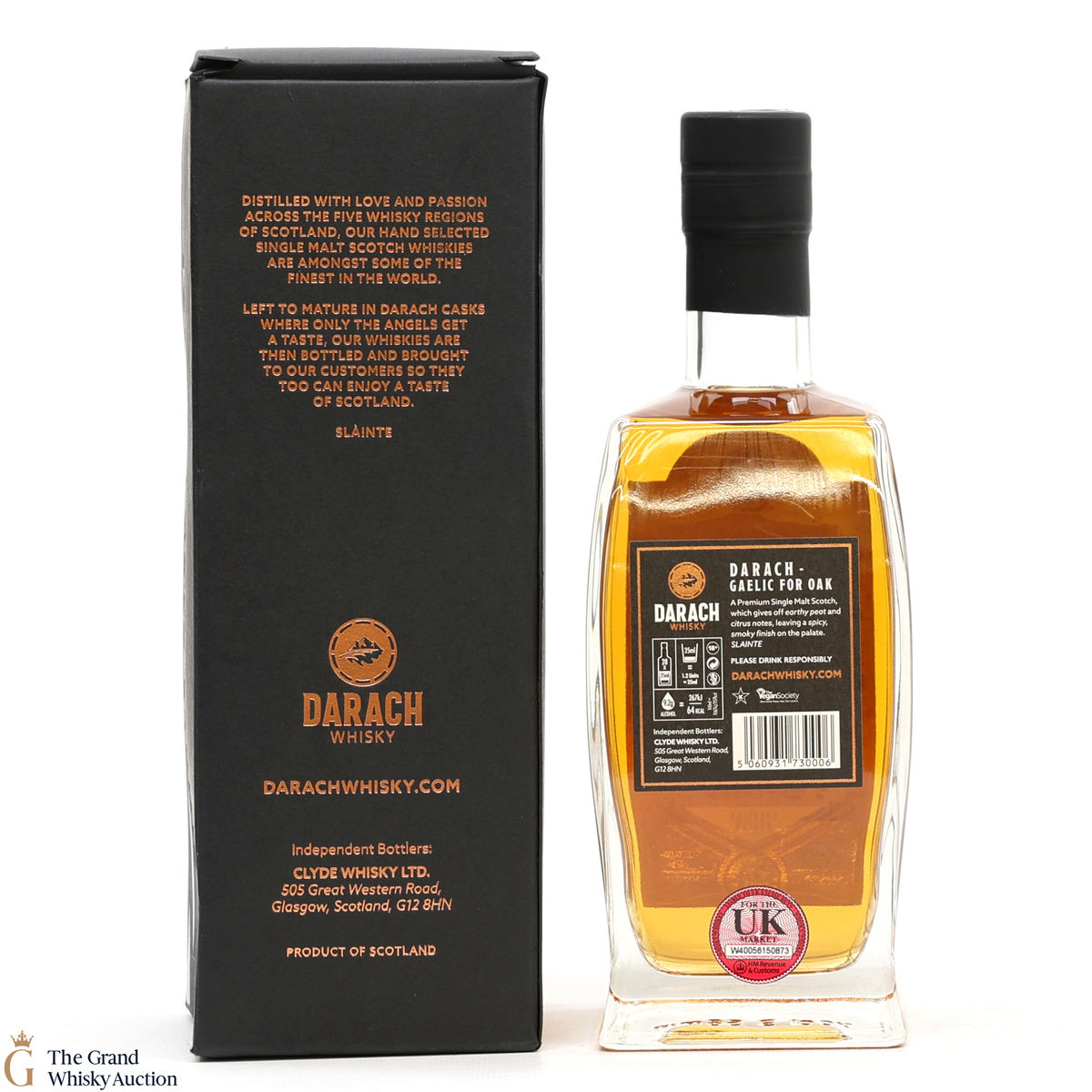 Distilled at the Allt-A-Bhainne Distillery in Speyside, this single malt was aged for 24 years in cask #103685. It was then bottled in 2021 at a strength of 46.6% ABV by Clyde Whisky Ltd under their Darach Whisky label.