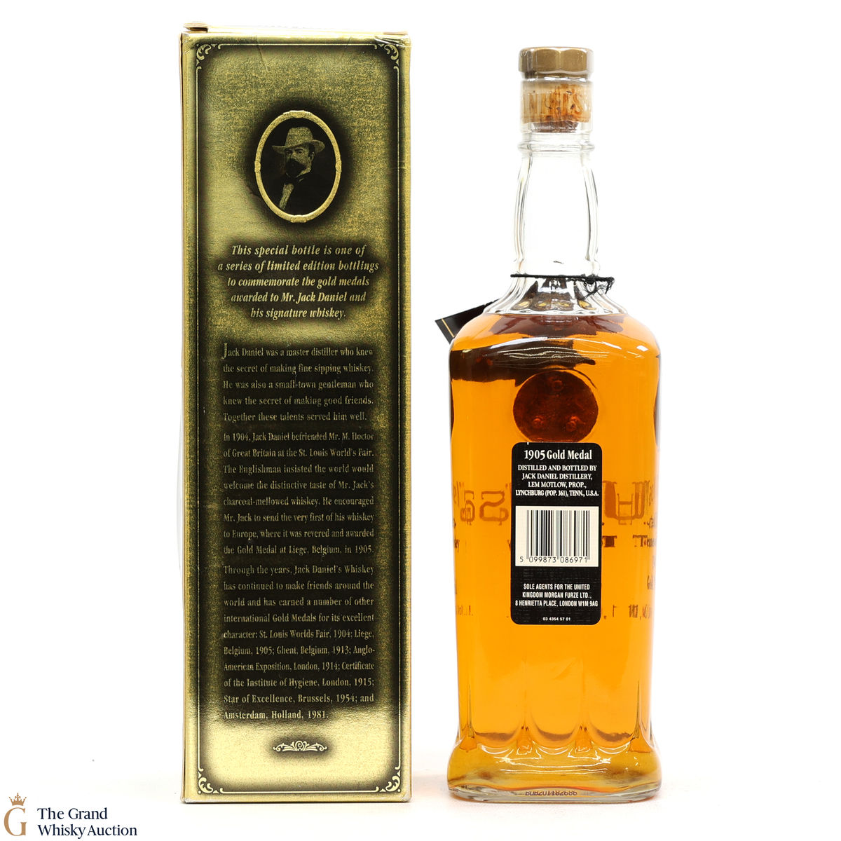 This unique bottling from Jack Daniel's Distillery is the 1905 Gold Medal edition. This bottle is the 2nd in the distillery's Gold Medal Series and honours the 1905 Liege, Belgium Star of Excellence which can be seen on the front of the bottle.