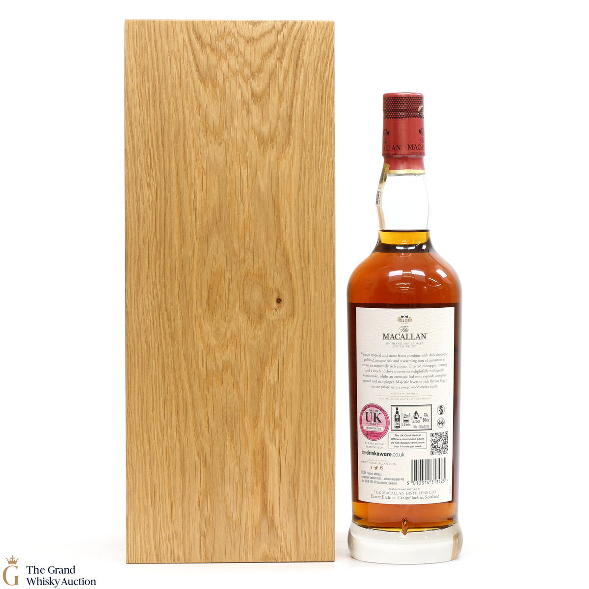 Each bottle in the collection comes in an oak presentation box lined with soft red Scottish leather, and a bespoke case is also available to house a trio of ongoing or limited-edition releases. Every bottle comes with a natural oak plinth which was previously a stave from a cask. Due to the plinths previous life as a whisky barrel you will see some minor imperfections, scratches, holes etc because it is a natural product.