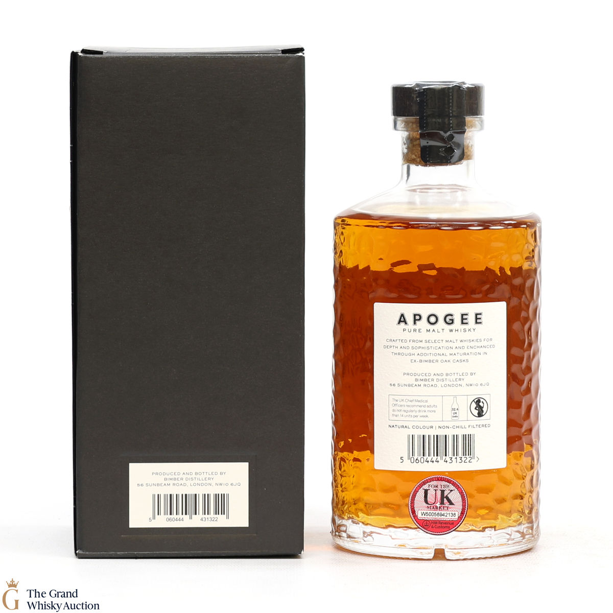 Apogee XII whisky enhanced through additional maturation in ex-Bimber Oak casks; matured for a minimum of 12 years before being enhanced further through blending and additional maturation in ex-bourbon casks that were previously used to age Bimber’s award-winning London single malt whisky.