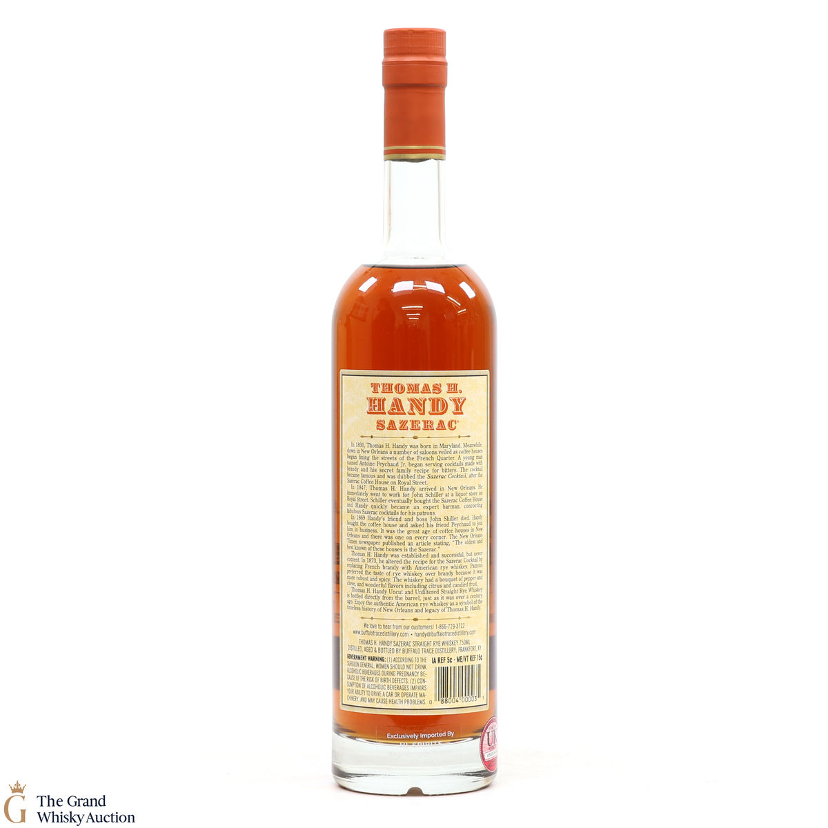 This collection is dubbed the antique collection and celebrates famous figures. The companies founder, Thomas H. Handy, is on the front of this bottle with the picture of the Sazerac Coffee House where everything started.
