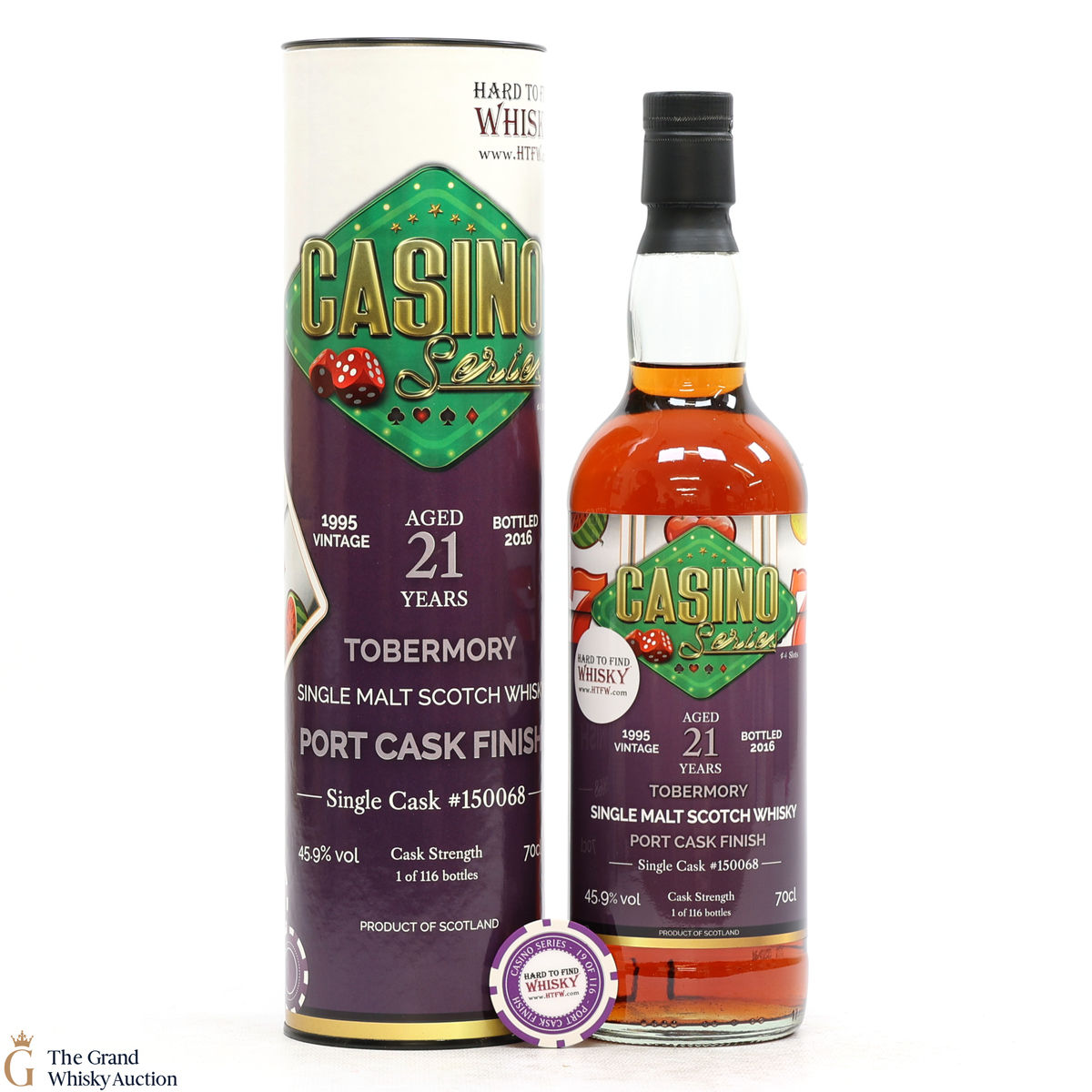 This 21-year-old Tobermory was finished in a single port cask #150068 and was bottled in 2016 by Hard To Find Whisky (HTFW) for their Casino Series. The series includes four bottlings which have all been bottled at full cask strength with no chill filtering and 100% natural colour.