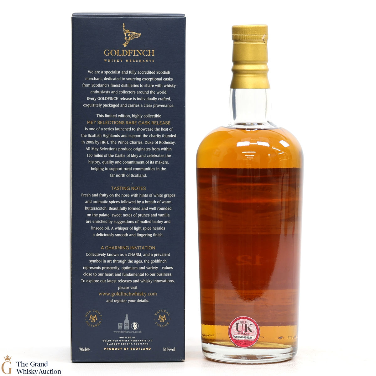 Due to the various ages of bottles and their seals, the condition of liquid is at the buyer's discretion and no claim can be lodged against failure/leakage in transit. Loss and breakage cover is available at 3% of the hammer price as standard. If the lot is not insured, no claim can be lodged against the courier or The Grand Whisky Auction for breakage or loss in transit.