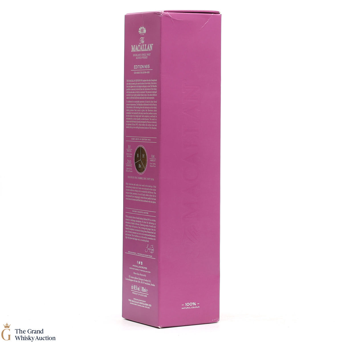 The fifth release in the Edition Series from The Macallan, The Macallan Edition No. 5 celebrates The Macallan’s extensive natural colour spectrum and the intricate whisky-making process, in partnership with masters at the Pantone Color Institute™ to create a unique shade of purple that features on the packaging.
