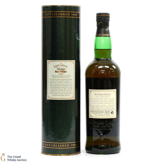 This is a bottling of Famous Grouse - 1992 Vintage, which was released following the success of the 1989 vintage. This vatted malt from Famous Grouse includes Highland Park and Macallan.