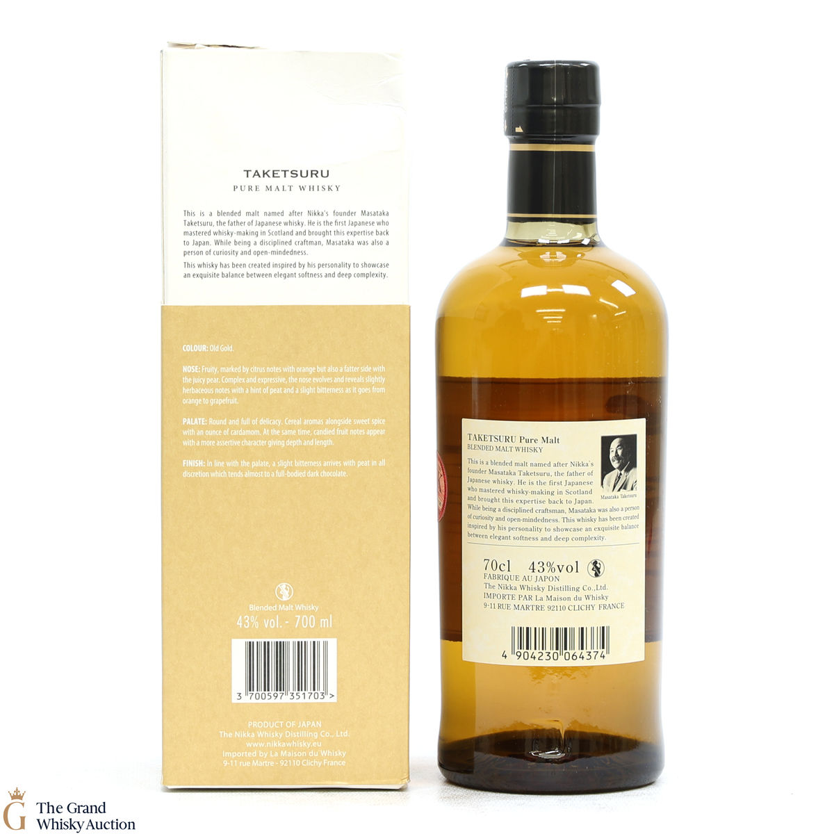 This is a non-age-statement expression of Nikka Taketsuru pure malt whisky, named after the company's founder, Masataka Taketsuru. It contains a blend consisting of a high percentage of malt from the Miyagikyo distillery, with the remainder coming from Yoichi, including some matured in sherry casks.