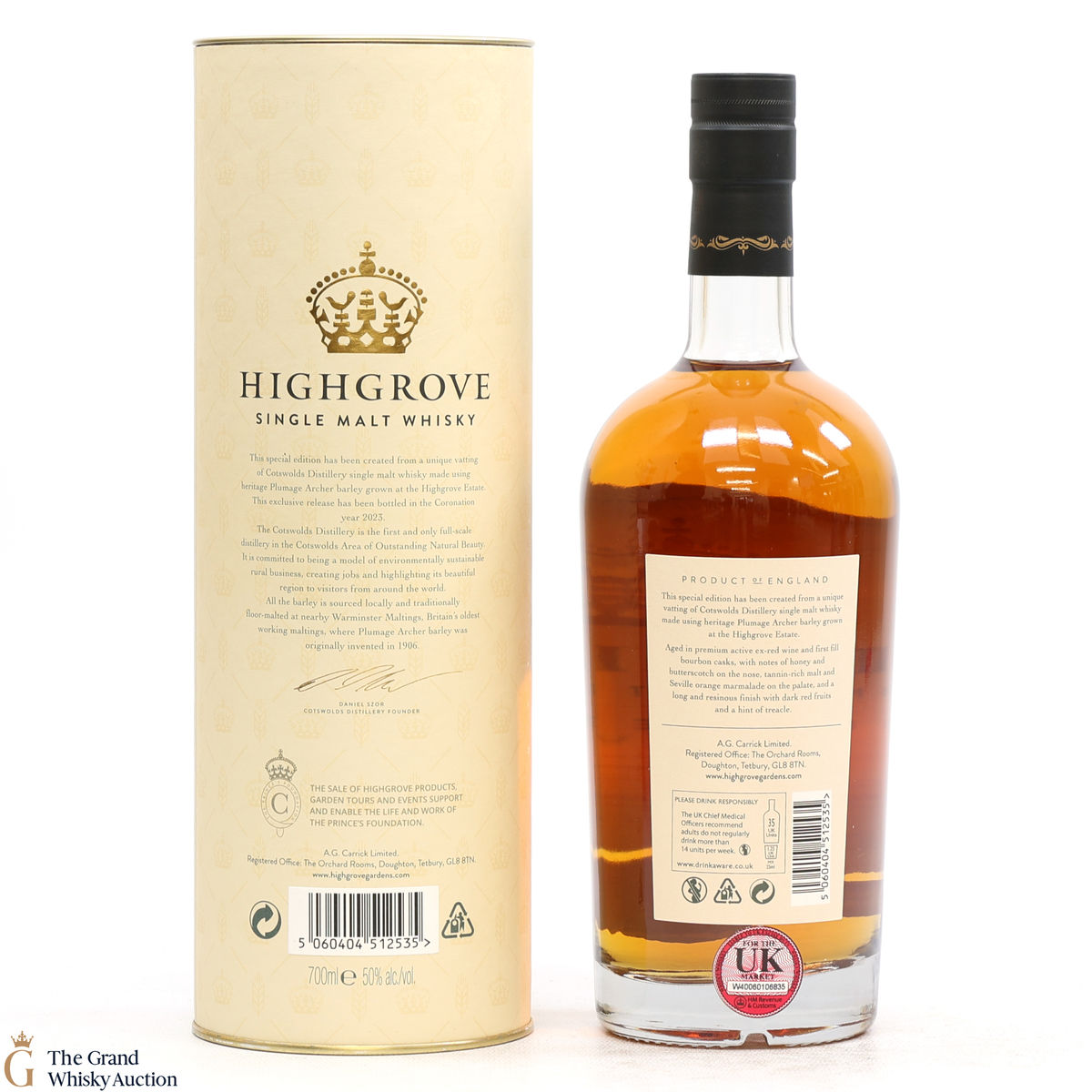 Distilled at the Cotswolds distillery south of Birmingham, this release was bottled in the Coronation year, 2023. This expression has been produced using whiskies made with Plumage Archer barley and is a vatting of whisky matured in ex-red wine & first-fill bourbon casks.