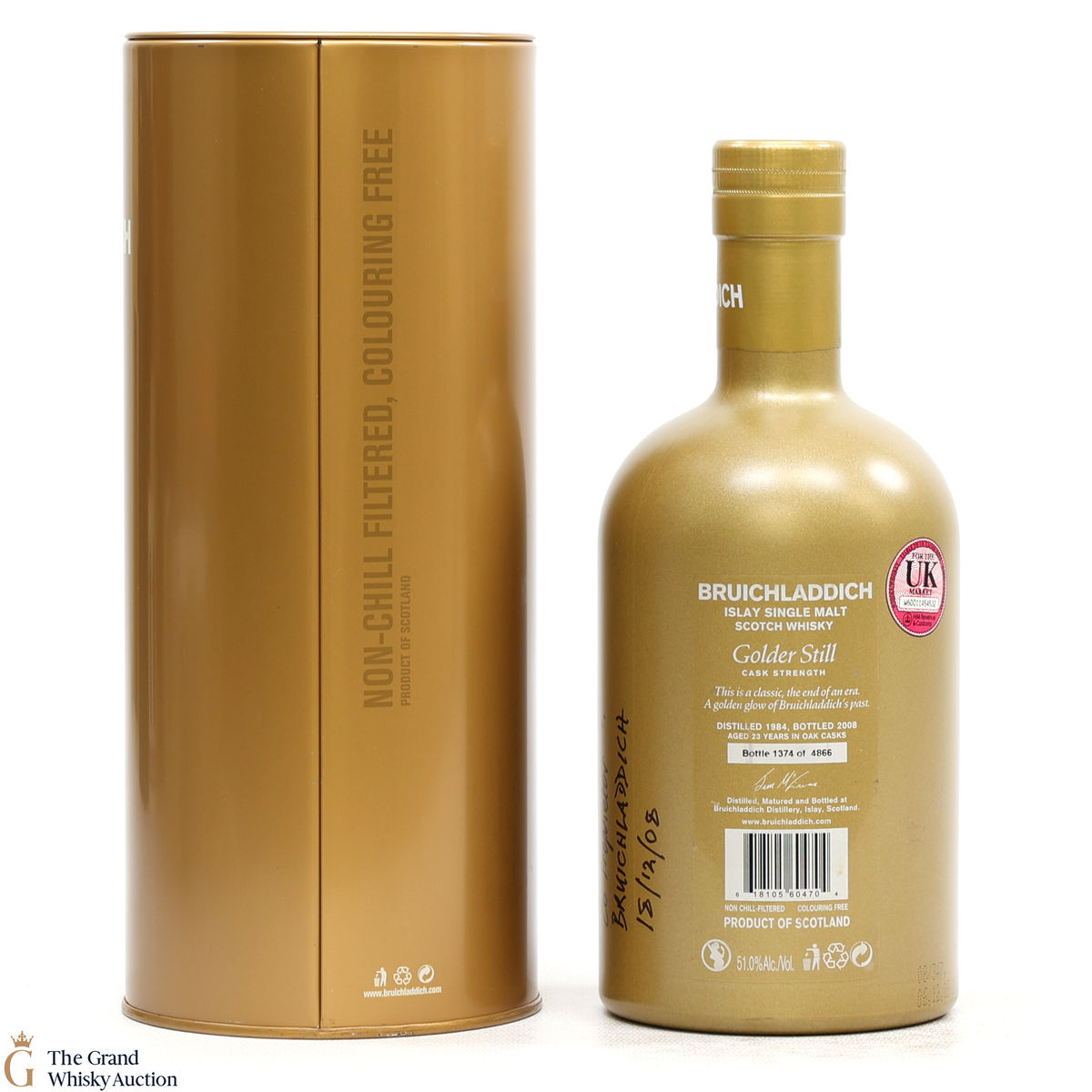Golder Still is a rare, limited edition released at 23 years old by Bruichladdich. This release was said to be a bit of an experiment having been matured in dumpy, smaller casks made like American cooperages had done so briefly in the 80s. with the smaller bourbon casks will give additional contact with the wood. It was bottled at the cask strength.