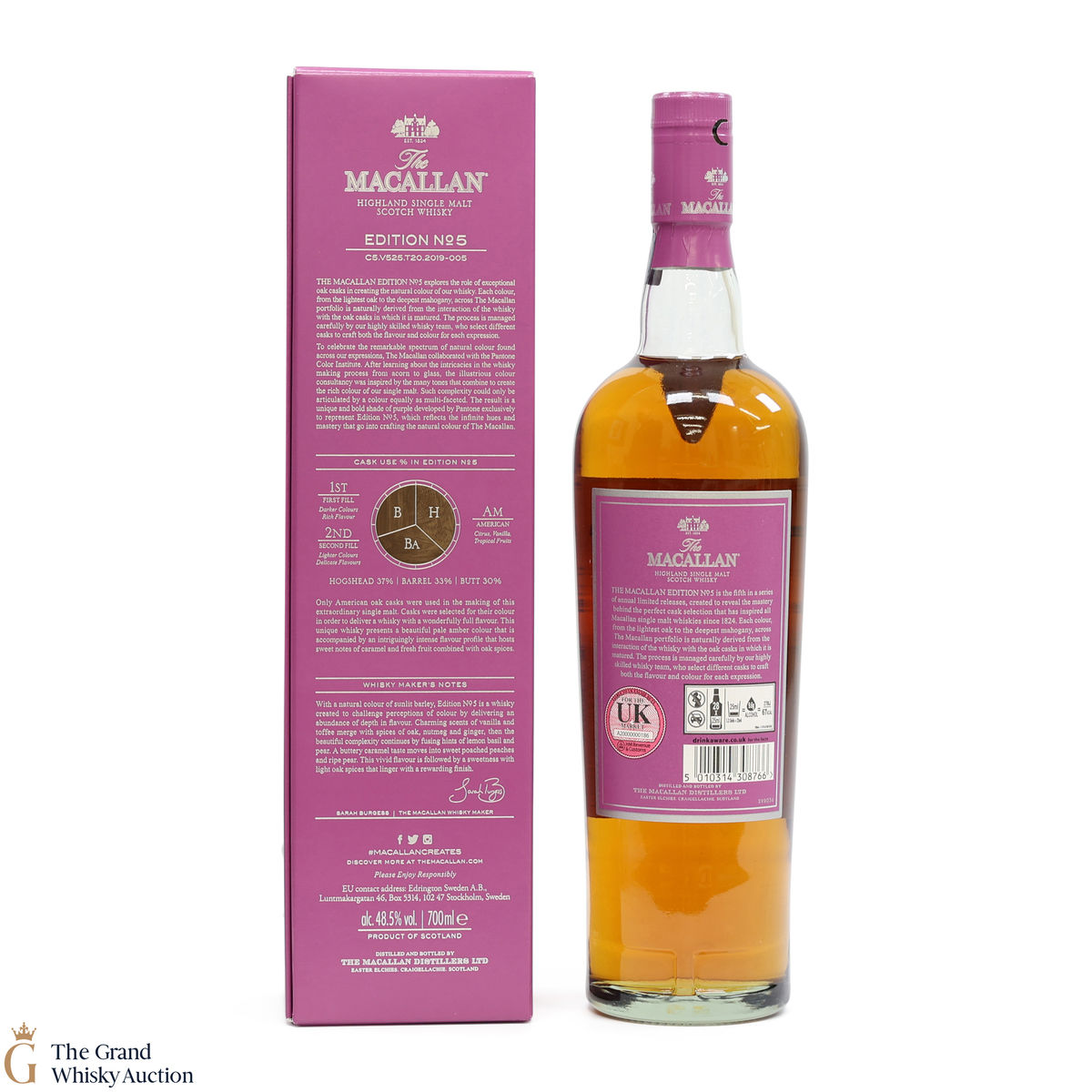 The fifth release in the Edition Series from The Macallan, The Macallan Edition No. 5 celebrates The Macallan’s extensive natural colour spectrum and the intricate whisky-making process, in partnership with masters at the Pantone Color Institute™ to create a unique shade of purple that features on the packaging.