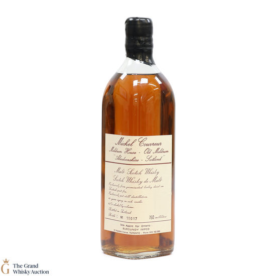 Michel Couvreur of Meldrum House, Aberdeenshire. Produced exclusively from germinated barley dried in peat fires and distilled in pot stills, then matured for 12 years in oak casks before being bottled at 43% ABV.