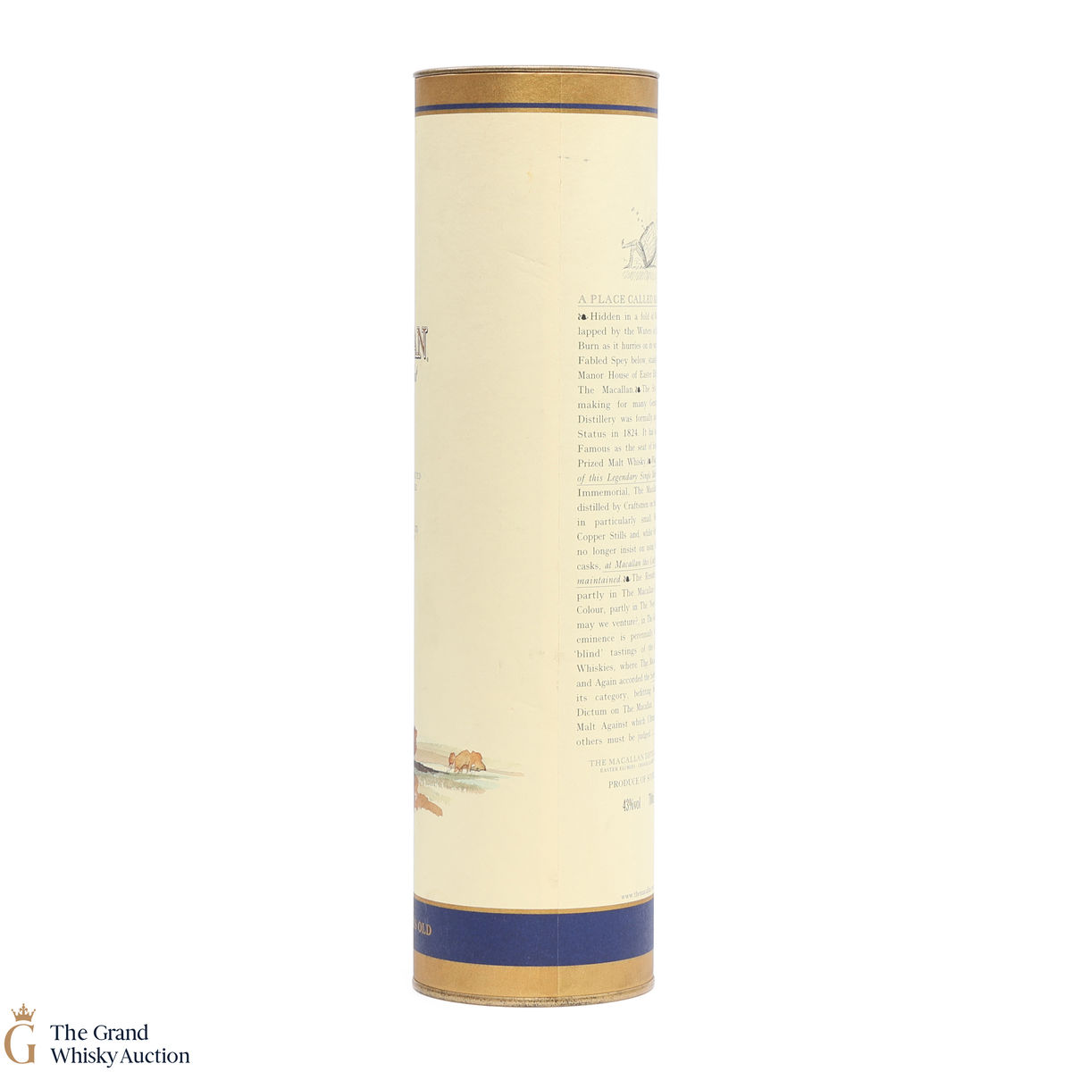 The start of this series began in 1981 and quite possibly the most recognisable malt in the world, The Macallan 18 Year Old. The 18 year old in the tube packaging is one of 6 releases of this kind, depicting Sara Middletons view of the estate on the front.