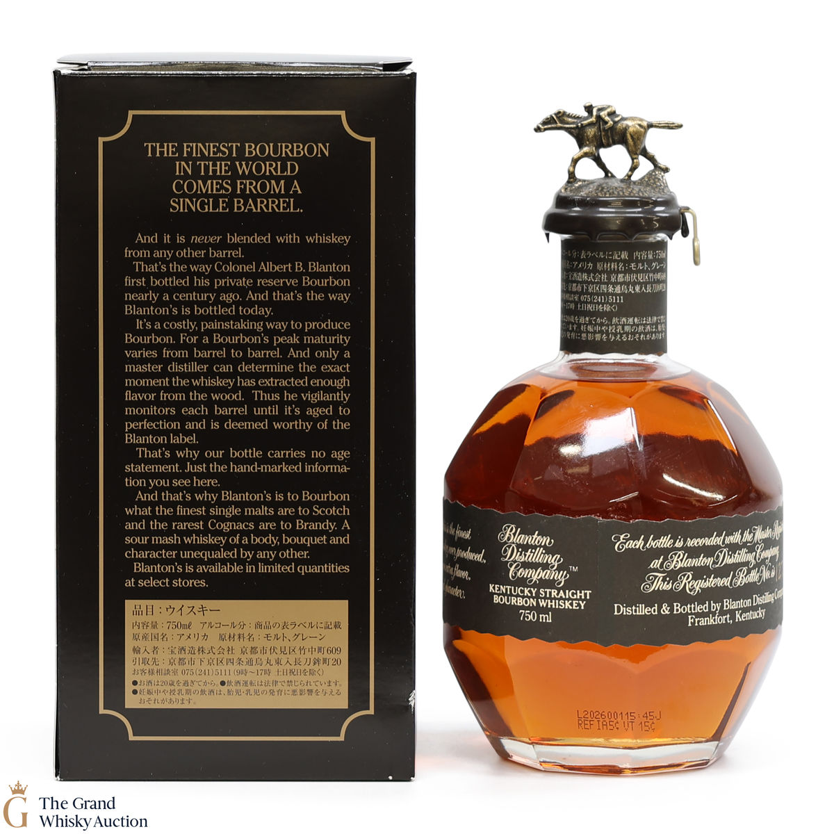 PLEASE NOTE: The wax seal on Blanton's bottles are prone to cracking in transit due to their design. Therefore, as stated in our T&Cs, we do not and will not accept liability should the seal be breached, broken, split or leak in transit. Additionally, please know due to the design of the internal cardboard packaging that surrounds the top of the bottles, it too may be torn. By bidding on this lot you have understood this to be true. Insurance is for complete breakage or loss in transit only.