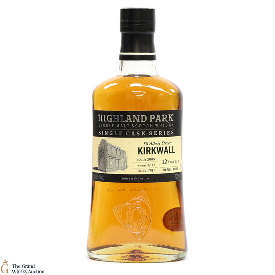 This 12-year-old single malt was distilled in 2005, matured in Refill Butt #1791, and bottled in 2017, as part of Highland Park's Single Cask Series. This limited edition of just 540 bottles, was released to celebrate the opening of 58 Albert Street, Kirkwall.
