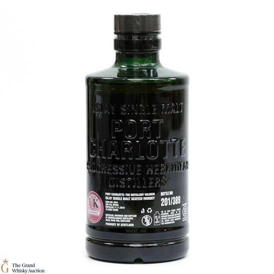 This Port Charlotte Valinch single cask is a single-cask distillery-only release. Distilled in Islay in 2010 matured in 2nd Fill Syrah #3844 for 12 years. This is one of 389 bottles.