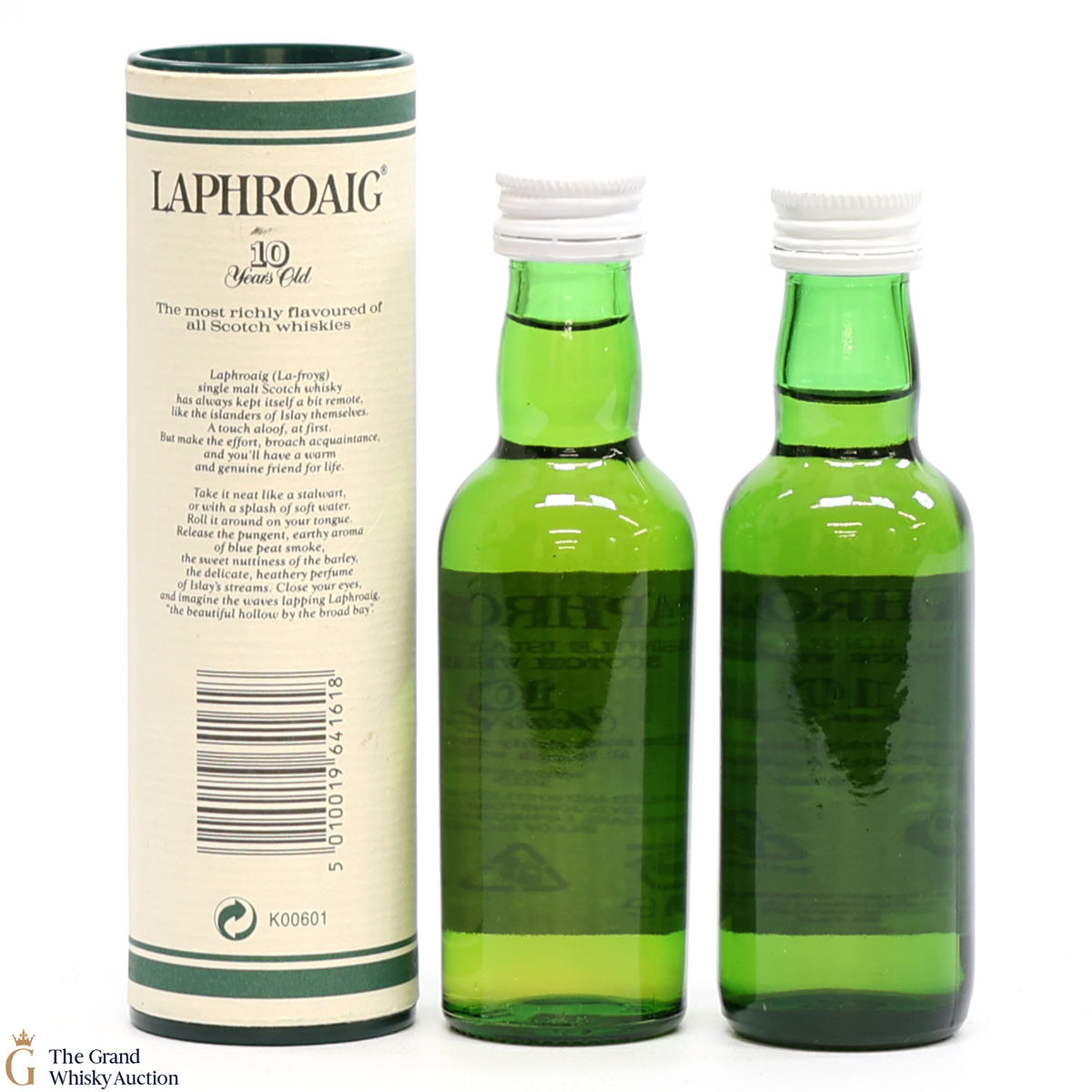 2 x 5cl bottlings of the medicinal 10-year-old from Islay's bestselling distillery, Laphroaig. In making Laphroaig, malted barley is dried over a peat fire. The smoke from this peat, found only on Islay, gives Laphroaig its particularly rich flavour.