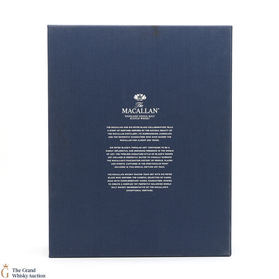 Along with this unique bottle of whisky is a scroll of artwork showing Sir Peter Blake's distinct style and a certificate detailing the history and heritage on which Sir Peter's art was based. There is also a piece of tracing paper which provides information on each character from The Macallan's history that Sir Peter chose to include in his art.