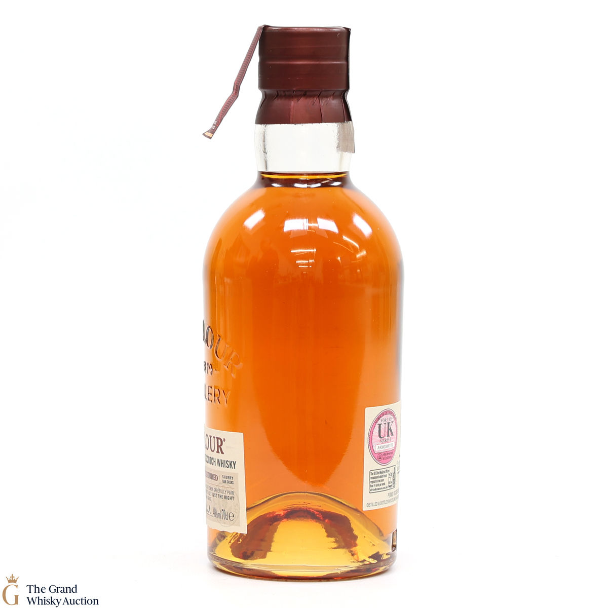 Due to the various ages of bottles and their seals, the condition of liquid is at the buyer's discretion and no claim can be lodged against failure/leakage in transit. Loss and breakage cover is available at 3% of the hammer price as standard. If the lot is not insured, no claim can be lodged against the courier or The Grand Whisky Auction for breakage or loss in transit.