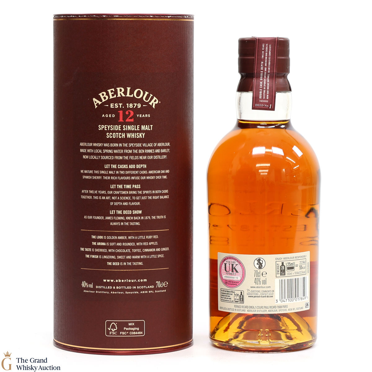 This Aberlour 12 Year Old, has been double cask matured in two handmade oak cask types. The double maturation both traditional oak and sherry casks adds depth of character to this single malt, now bottled at 40% abv.