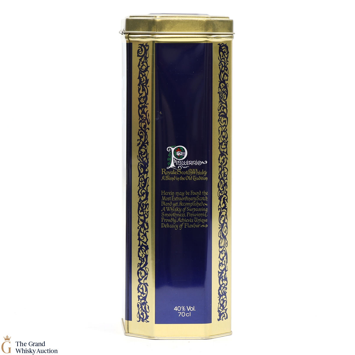 This is an eye-catching older-style bottling of Pinwinnie Royale Deluxe Blended Whisky. It is very elegantly packaged with an iconic presentation tin. It is estimated that this botting is from the 1980s - unfortunately, it is now discontinued.