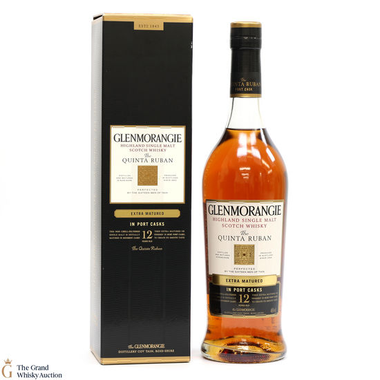 Glenmorangie Quinta Ruban is matured in bourbon casks before finishing in the finest Ruby Port casks from the "Quintas" or wine estates of Portugal. Ruban is Gaelic for Ruby.