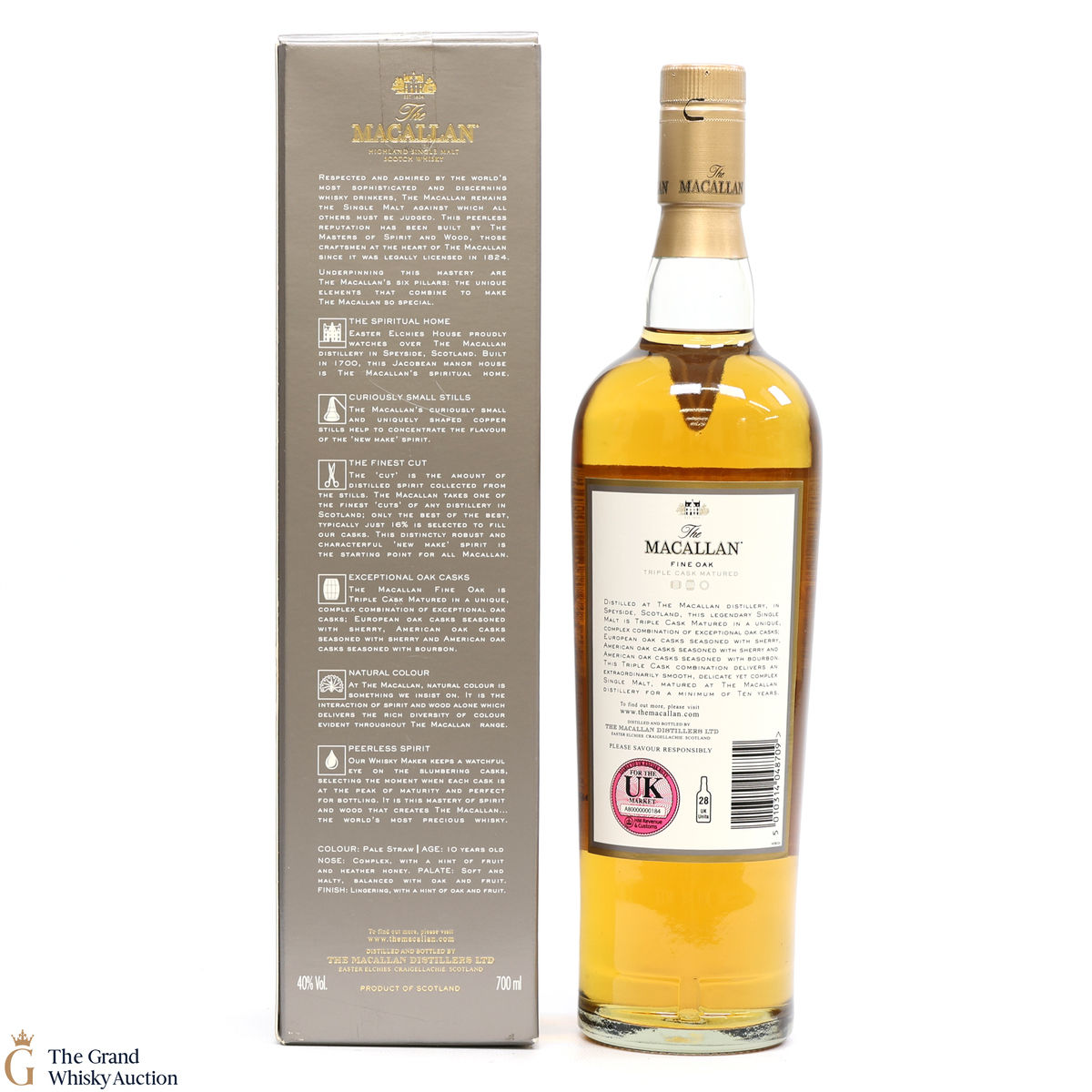 This 10-year-old single malt is part of Macallan's Fine Oak, triple cask matured range. It has been matured for ten years in three oak cask types; Europen oak seasoned with sherry, American oak seasoned with sherry and American oak seasoned with bourbon. This bottling has been discontinued.